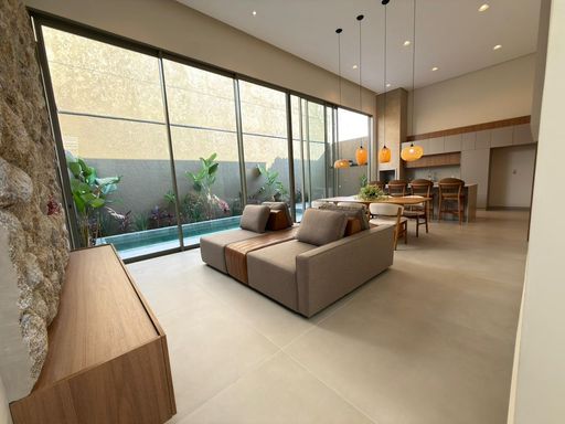 Uma casa pensada para quem valoriza praticidade, conforto e um projeto contemporâneo em cada detalhe. Totalmente térrea, com 204 m² de área construída, este imóvel se destaca pela arquitetura moderna e pela excelente funcionalidade dos ambientes. São 3 suítes, sendo uma delas com closet, todas com um grande diferencial: vistas para o jardim, trazendo mais iluminação natural, ventilação e conexão com a área externa. A área social é totalmente integrada, com esquadrias minimalistas do piso ao teto que ampliam os espaços e valorizam ainda mais a entrada de luz natural, criando um ambiente sofisticado e acolhedor. A casa conta ainda com marcenaria planejada Todeschini em todos os ambientes, além da área social já mobiliada, garantindo praticidade e um acabamento de excelente qualidade. O projeto prioriza o conforto no dia a dia, com uma planta funcional, ideal para quem busca viver com mais comodidade sem abrir mão de sofisticação. Localizada no Condomínio Belvedere I, o empreendimento oferece infraestrutura completa, com portaria 24 horas, piscina, quadra poliesportiva, quadra de beach tennis e academia. Uma excelente oportunidade para viver com estilo, praticidade e qualidade de vida. Agende a sua visita!