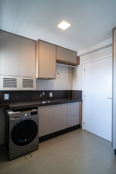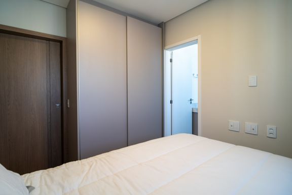 O imóvel é totalmente mobiliado e decorado, com acabamentos de alto padrão. Conta com armários planejados Todeschini e ar-condicionado LG em todos os ambientes. Os ambientes sociais são revestidos em piso porcelanato, enquanto os dormitórios possuem piso vinílico, proporcionando maior conforto térmico e acústico.