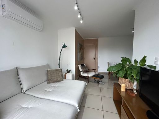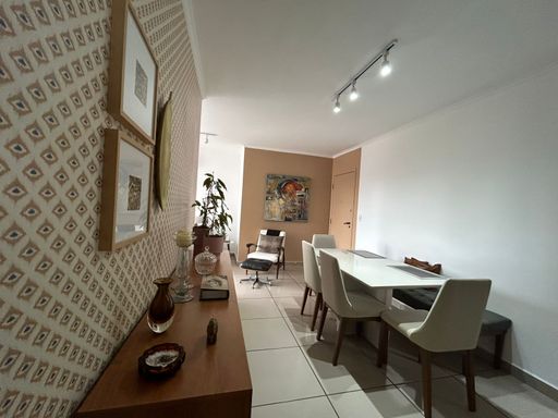 Com 81m² de área privativa, esse imóvel dispõe de 3 dormitórios, sendo 1 suíte; sala ampla para dois ambientes, integrada à varanda; cozinha planejada, com área de serviço fechada em vidro; banheiro social e