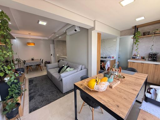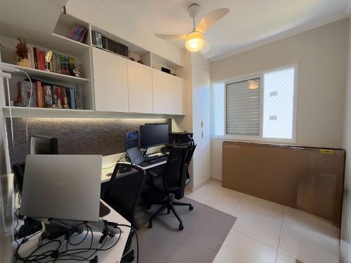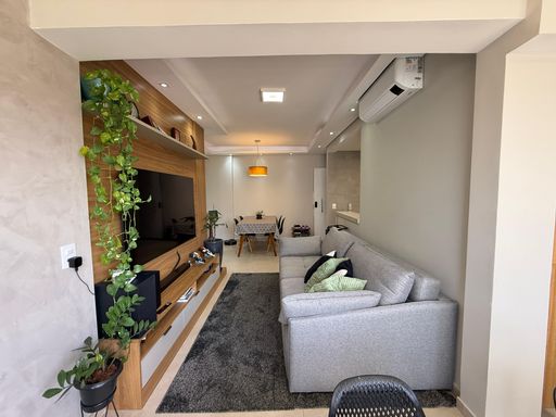 Apartamento com 80 m² muito bem distribuídos, composto por 3 dormitórios, sendo 1 suíte com ar-condicionado. O terceiro quarto é utilizado atualmente como closet, com fácil reversão. Ambientes integrados, com sala de jantar, TV e cozinha conectadas à varanda e climatizado com ar-condicionado. Possui ainda lavanderia separada e móveis planejados, garantindo praticidade e sofisticação.