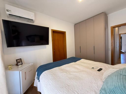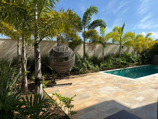 Na área externa, você encontra uma piscina com trocador de calor, ideal para aproveitar em qualquer época do ano, além de um espaço perfeito para receber amigos e familiares com conforto e privacidade.
