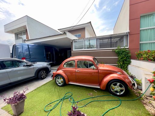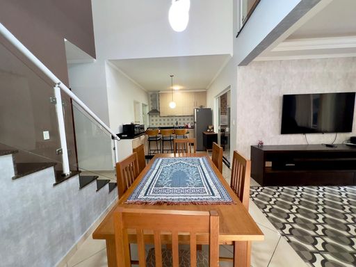 A casa ainda conta com um mezanino versátil, que pode ser utilizado como escritório, sala íntima ou até um quarto adicional, além de 4 vagas de garagem.
