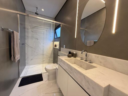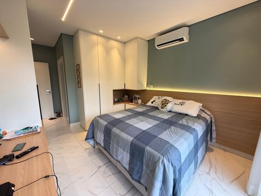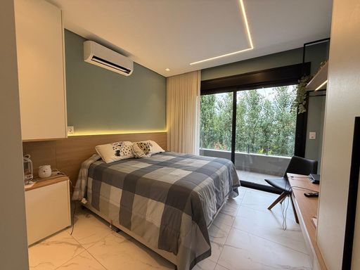 O imóvel conta com cozinha totalmente equipada, marcenaria planejada em todos os ambientes, persianas automatizadas e sistema de aquecimento solar, garantindo conforto, praticidade e eficiência no dia a dia.