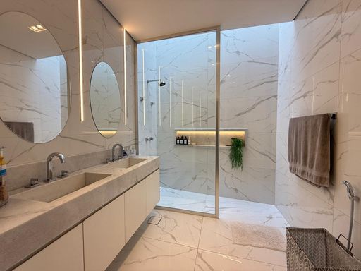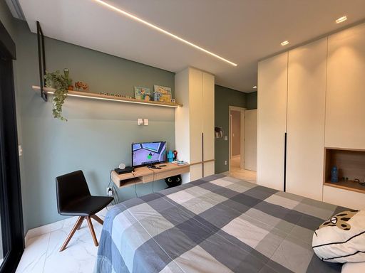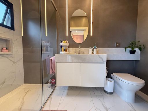 Um dos grandes diferenciais é a excelente distribuição dos espaços, com 4 suítes amplas, oferecendo conforto e privacidade para toda a família. Para completar, o sobrado dispõe de elevador com acesso ao piso superior, proporcionando acessibilidade e ainda mais comodidade.