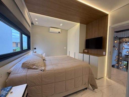 Sobrado praticamente novo no Alphaville Nova Esplanada 3, vendido de porteira fechada, totalmente mobiliado, decorado e climatizado — é realmente entrar e morar.