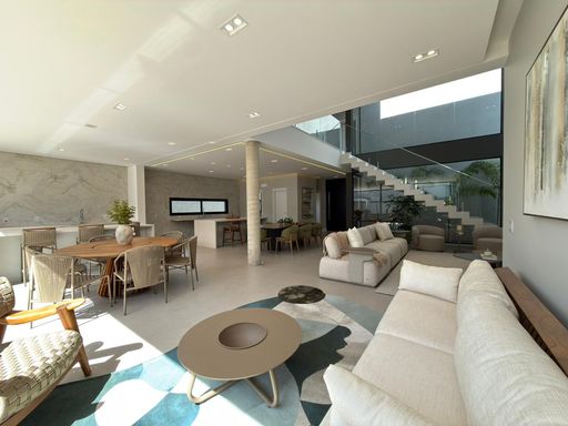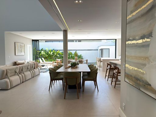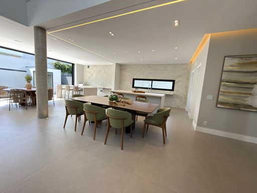Implantado em um terreno de 465m², com 360m² de área construída, o imóvel se destaca pelo projeto assinado por Rodrigo Latorre, que valoriza a integração dos ambientes, a iluminação natural e a funcionalidade dos espaços.