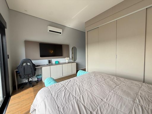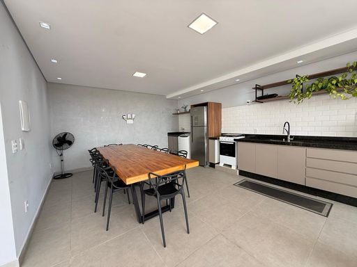 A área íntima conta com 3 dormitórios, sendo 1 suíte, todos com móveis planejados, além de ar-condicionado em dois dormitórios e banheiro social.