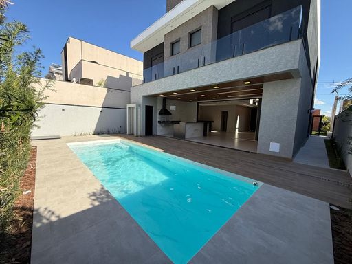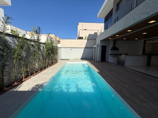 No pavimento térreo o projeto conta com uma sala ampla, cozinha, escritório com banheiro (podendo ser uma suíte reversível), despensa, área de serviço, depósito, área gourmet com piscina e um banheiro externo.