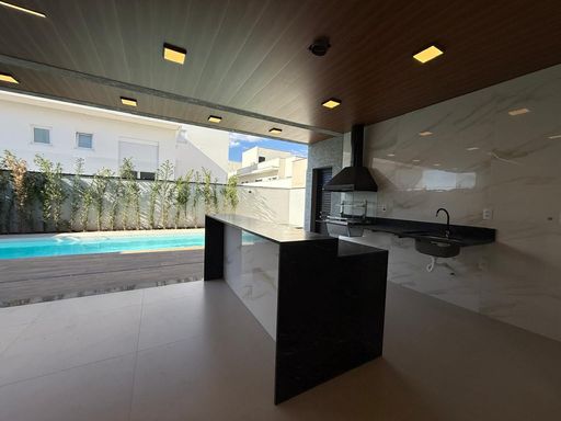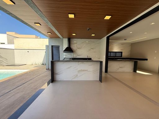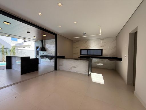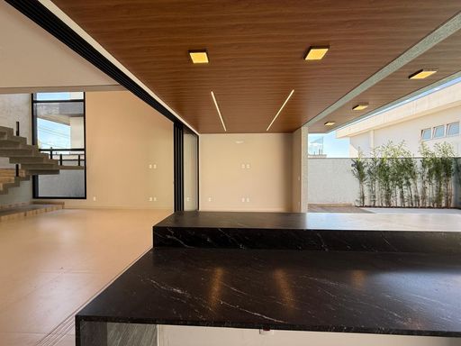 A integração entre a sala, cozinha e área gourmet segue o conceito aberto, proporcionando fluidez e modernidade – ideal para reunir amigos e familiares em um ambiente harmonioso e funcional.