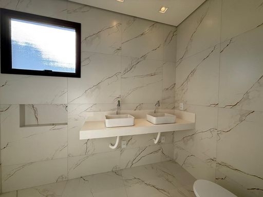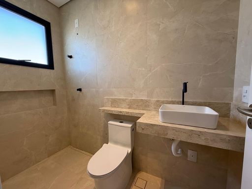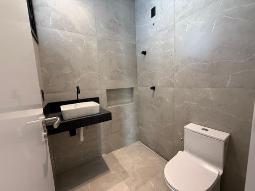 Na área gourmet há um banheiro externo, pensado para oferecer praticidade e conforto.
