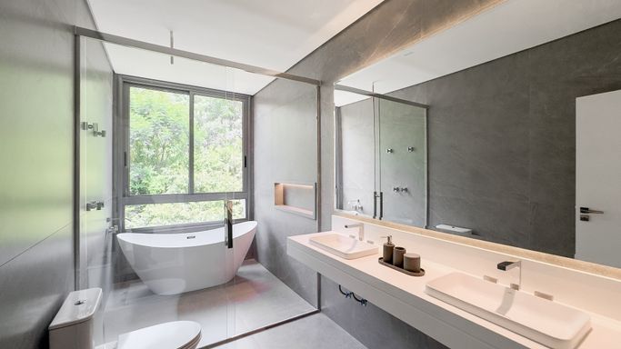 Pensando em sustentabilidade e tecnologia, a casa conta ainda com sistema fotovoltaico com boiler, preparação para carregamento de carro elétrico e soluções modernas que unem eficiência e conforto.